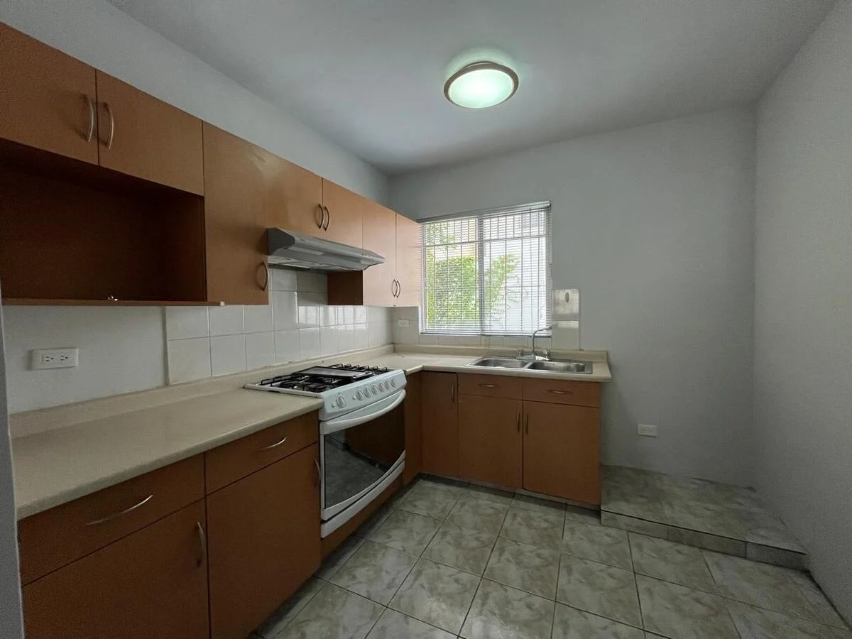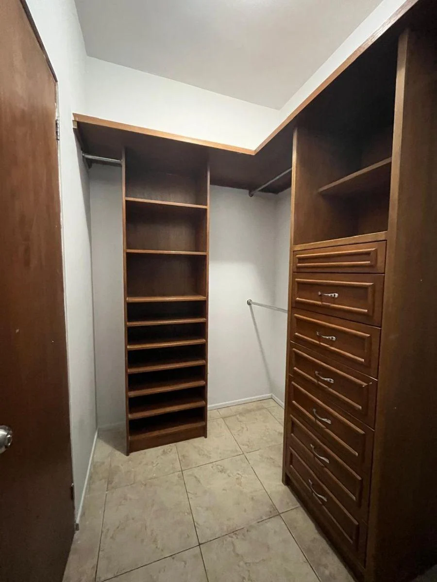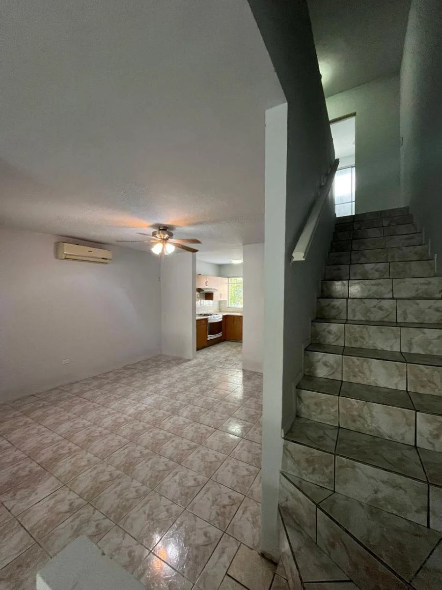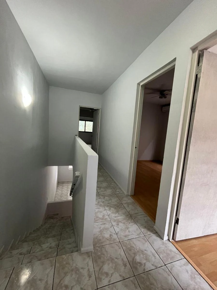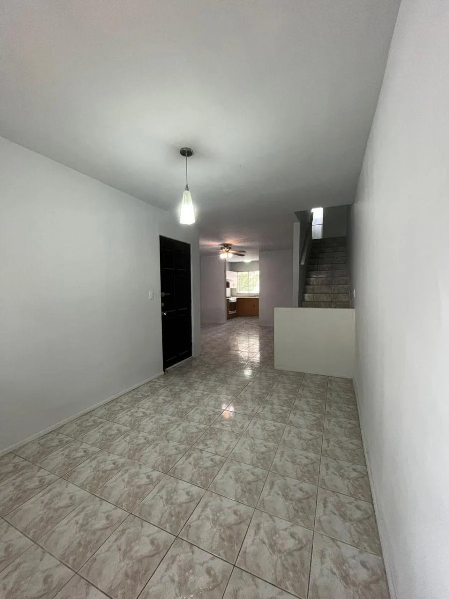 closet de pared comparten baño. Sala comedor y cocina en planta baja, baño de visitas, cuarto de lavandería y amplio patio trasero con pasillo lateral.