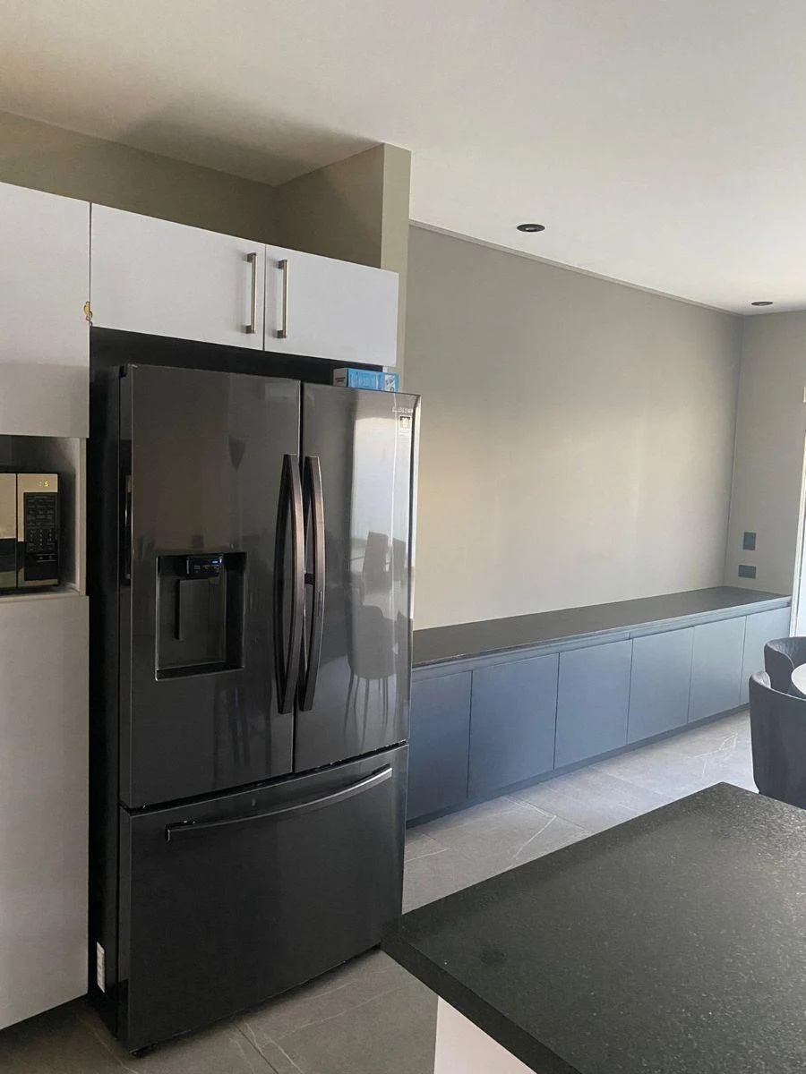 Planta baja: Cochera para 2 carros, recibidor, sala y comedor, 1/2 baño, cocina integral granito, jardín y pasillo de servicio, sala, bodega y bar.
